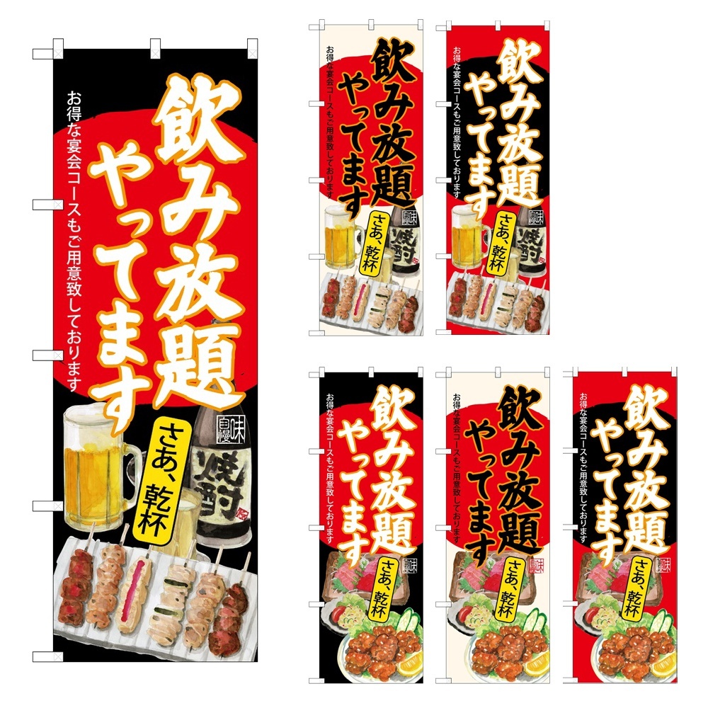 のぼり 飲み放題 (選べるデザイン) [SNB-4516・4517・4518・4519・4520・4521]
