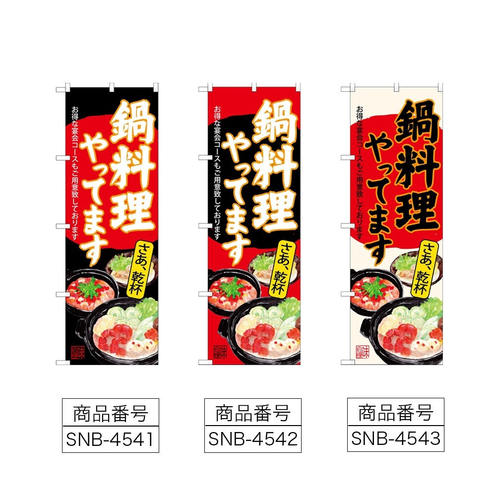 のぼり 鍋料理やってます (選べるデザイン) [SNB-4541・4542・4543]