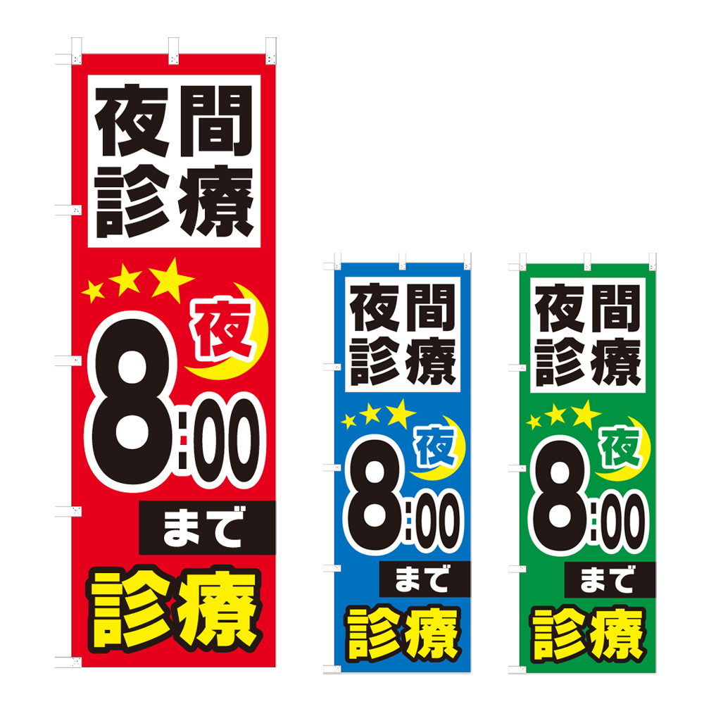のぼり 夜間診療 夜8:00まで (選べるデザイン) NSV-0978・0979・0980