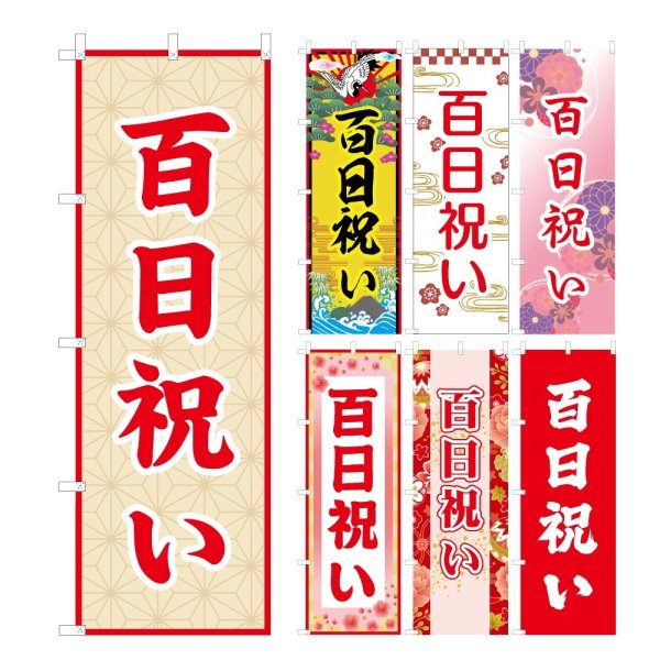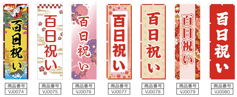 のぼり旗 百日祝い ももかいわい(選べるデザイン・選べるサイズ) VJ0074〜VJ0080