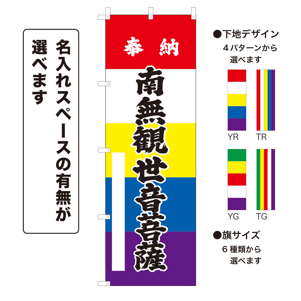 のぼり旗 奉納 南無観世音菩薩 ほうのうなむかんぜおんぼさつ(選べるデザイン・選べるサイズ)五色幕デザイン