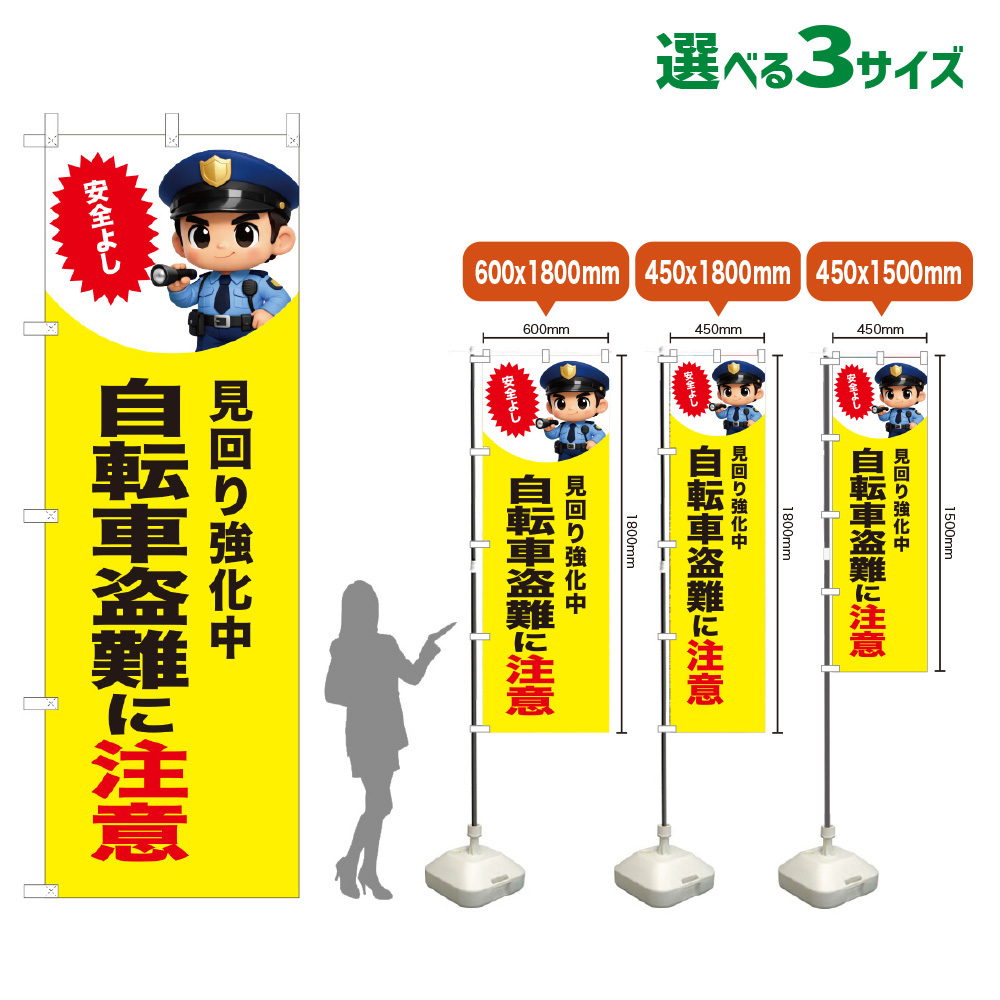 のぼり旗 自転車盗難に注意 (見回り強化中)(黄)
