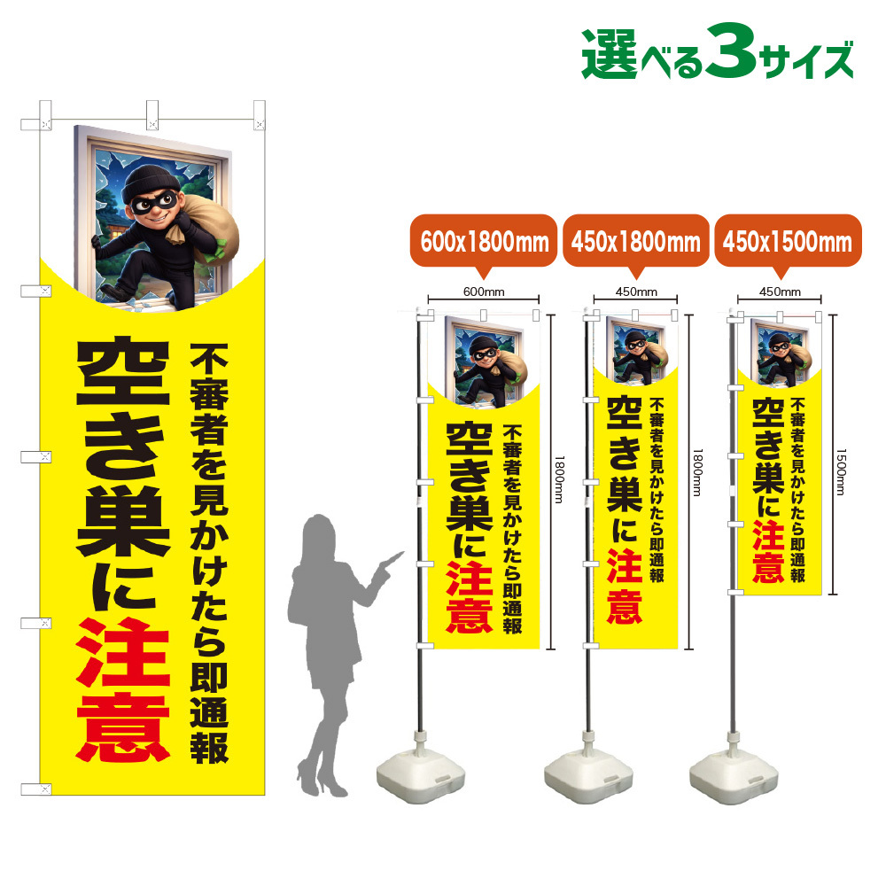のぼり旗 空き巣に注意 (黄)