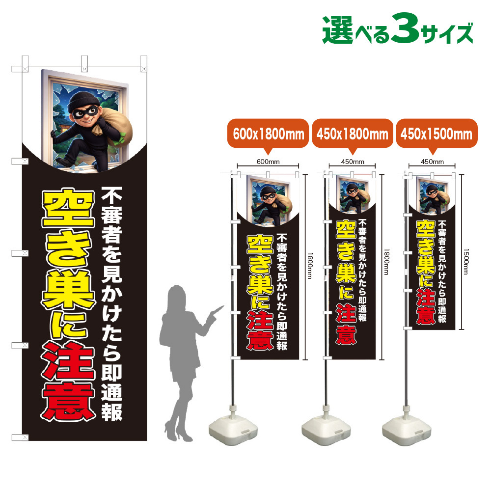 のぼり旗 空き巣に注意 (黒) [VKL-0299・VKM-0299・VKS-0299]