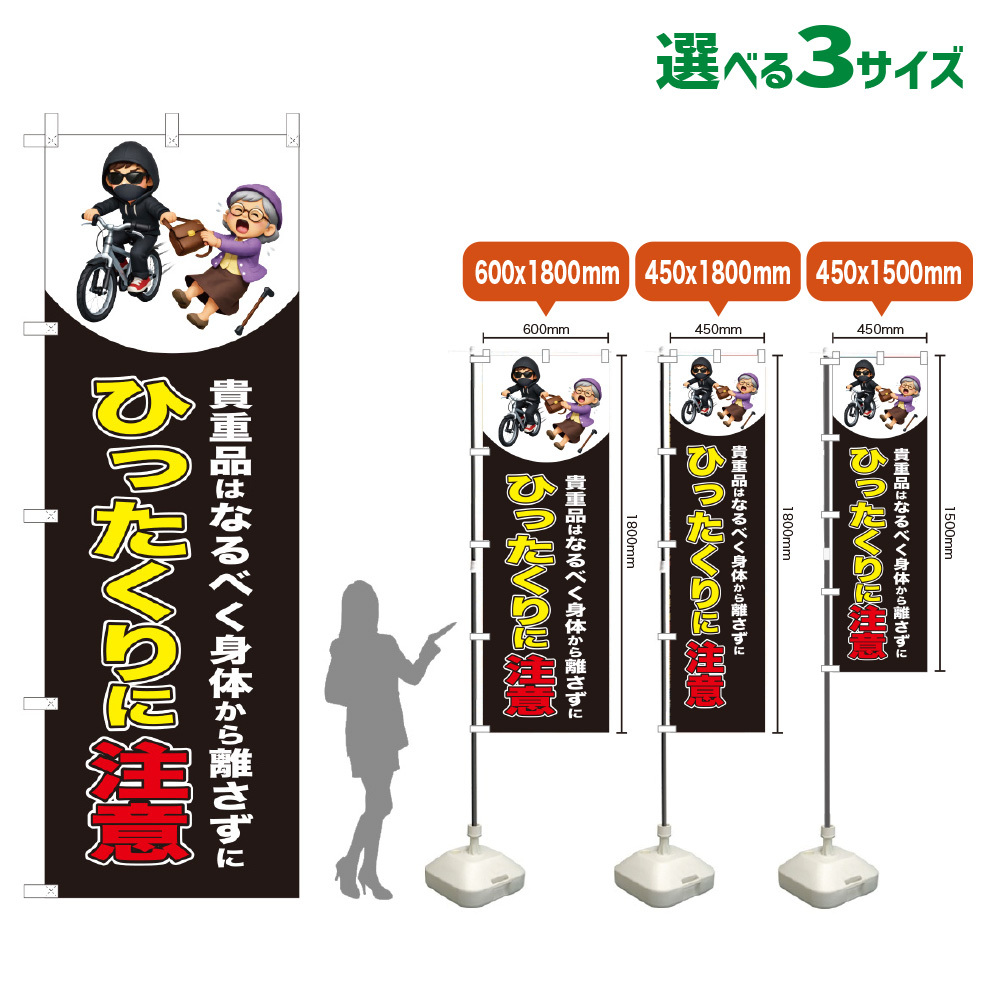 のぼり旗 ひったくりに注意 (自転車)(黒) [VKL-0301・VKM-0301・VKS-0301]