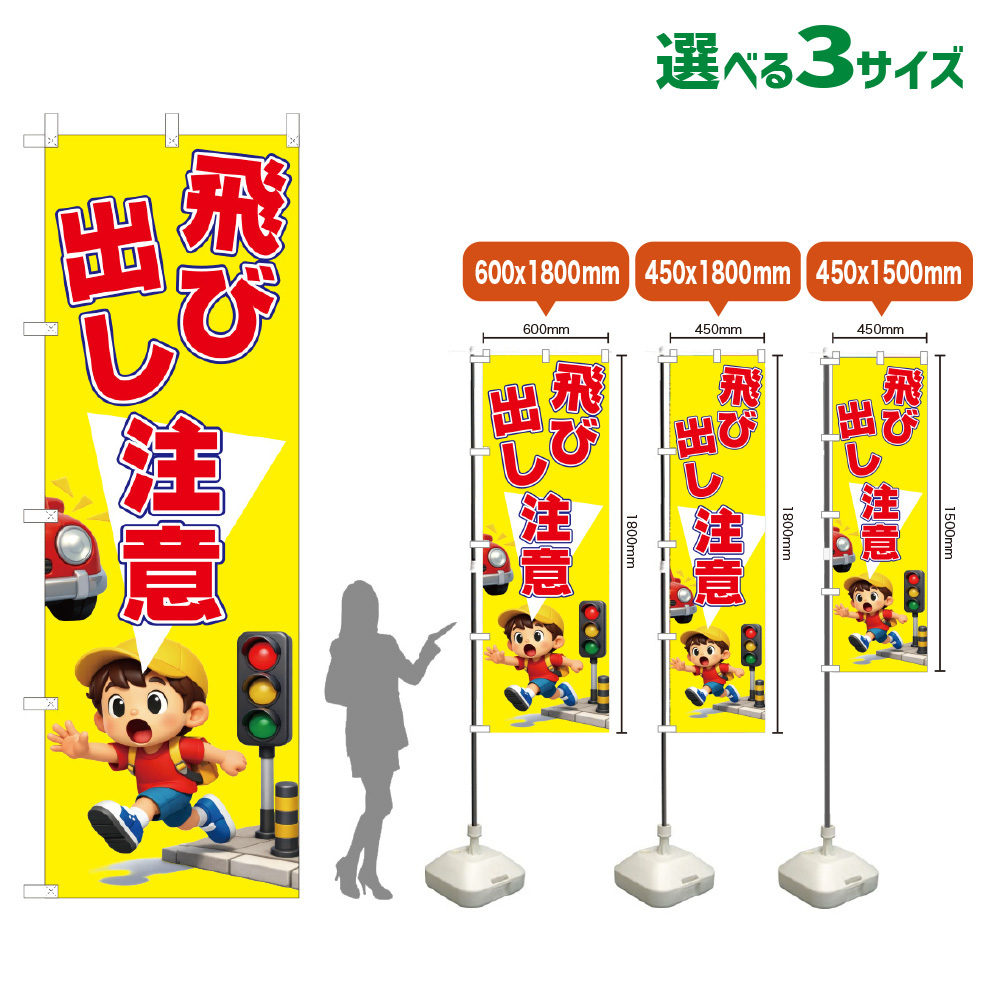 のぼり旗 飛び出し注意 (黄) [VKL-0308・VKM-0308・VKS-0308]