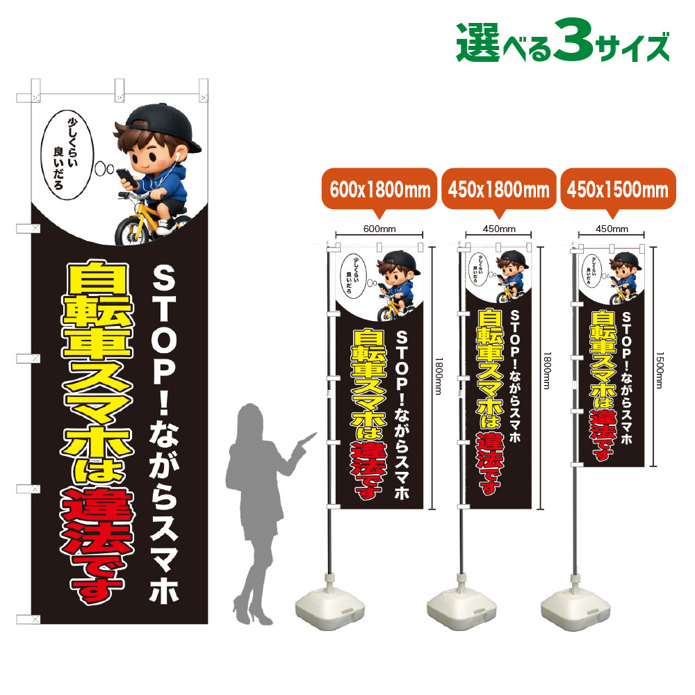 のぼり旗 自転車スマホは違法です (黒) [VKL-0311・VKM-0311・VKS-0311]