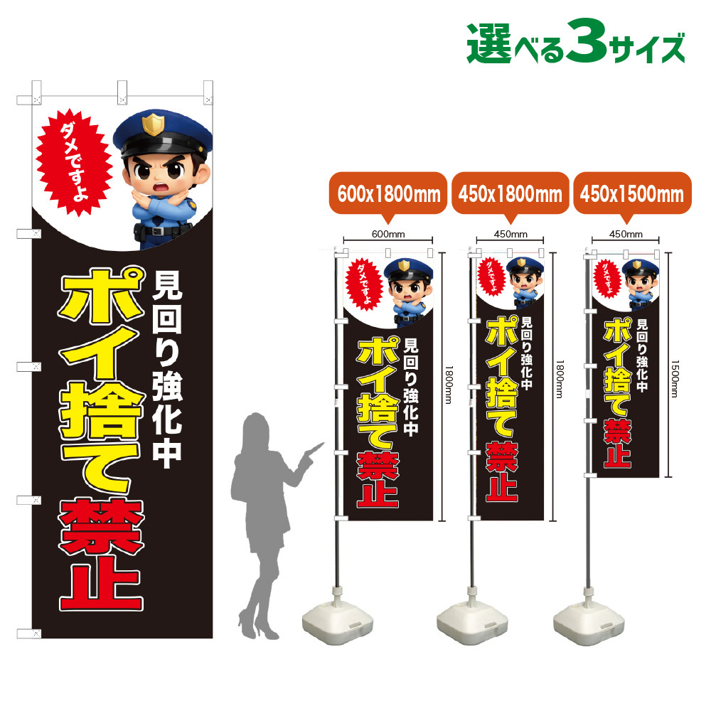 のぼり旗 ポイ捨て禁止 (見回り強化中)(黒)